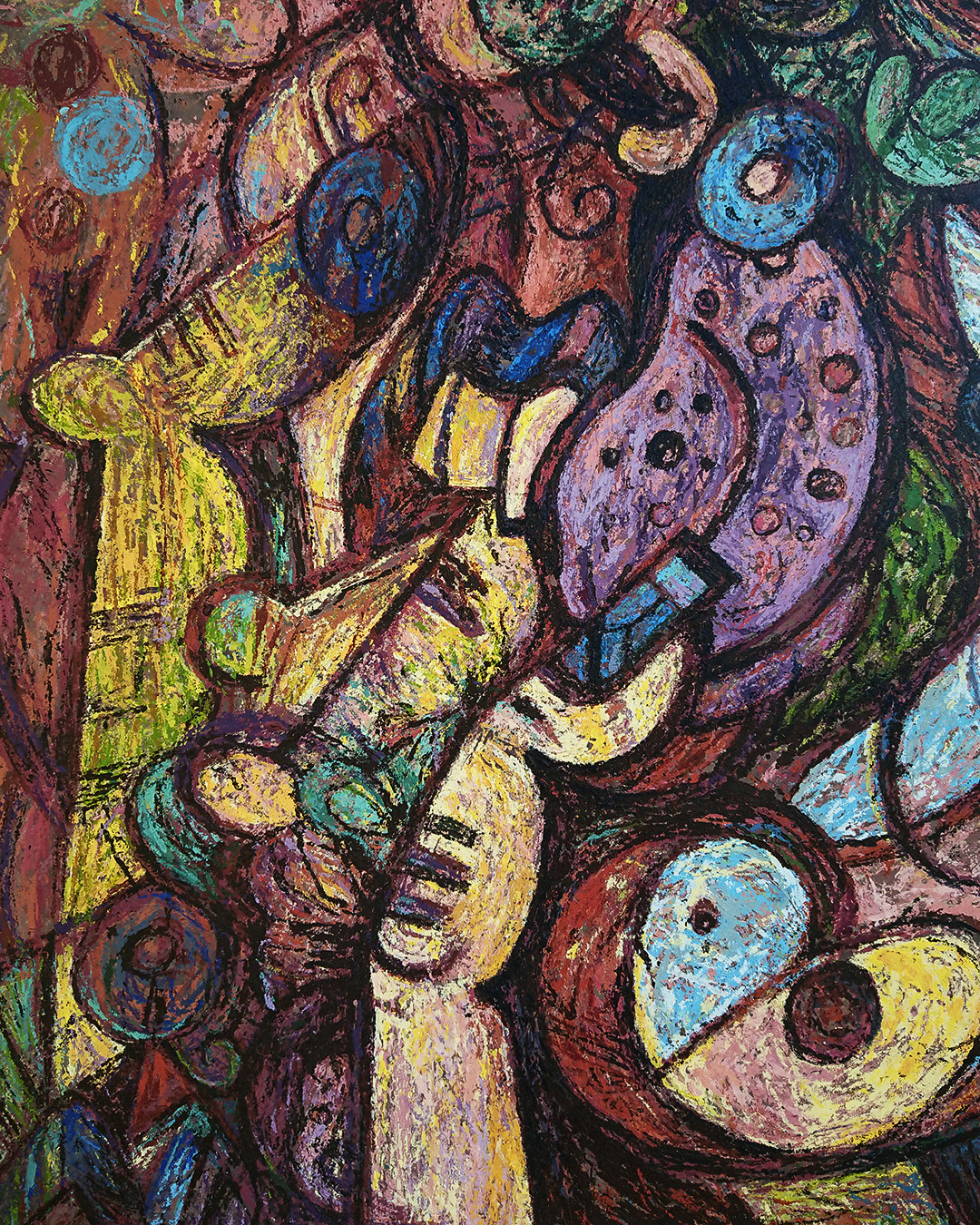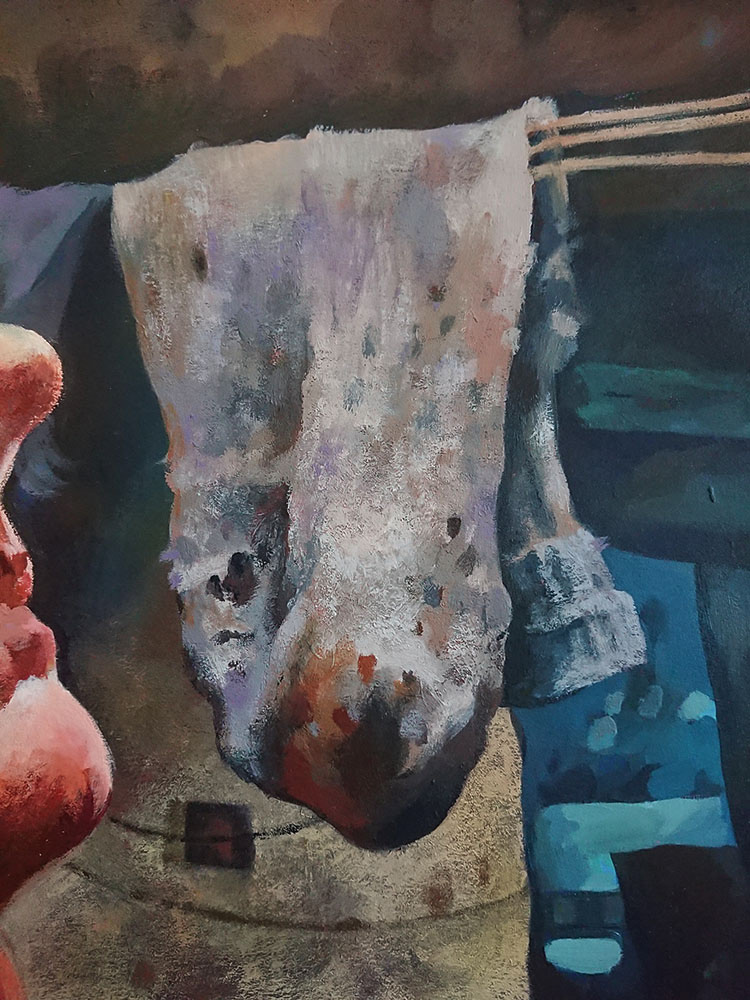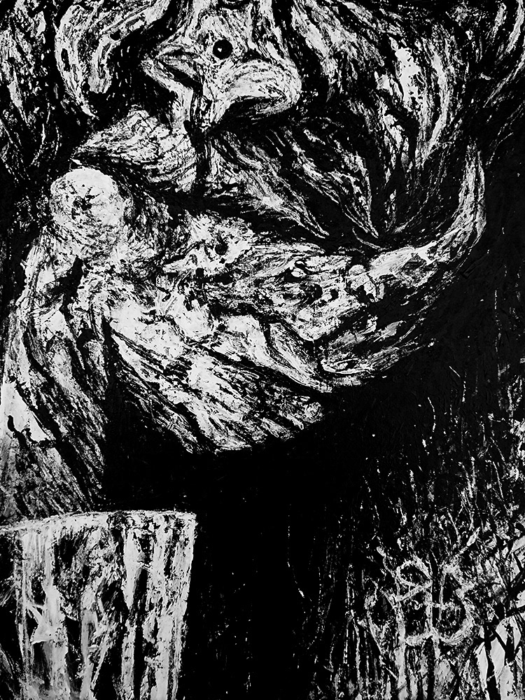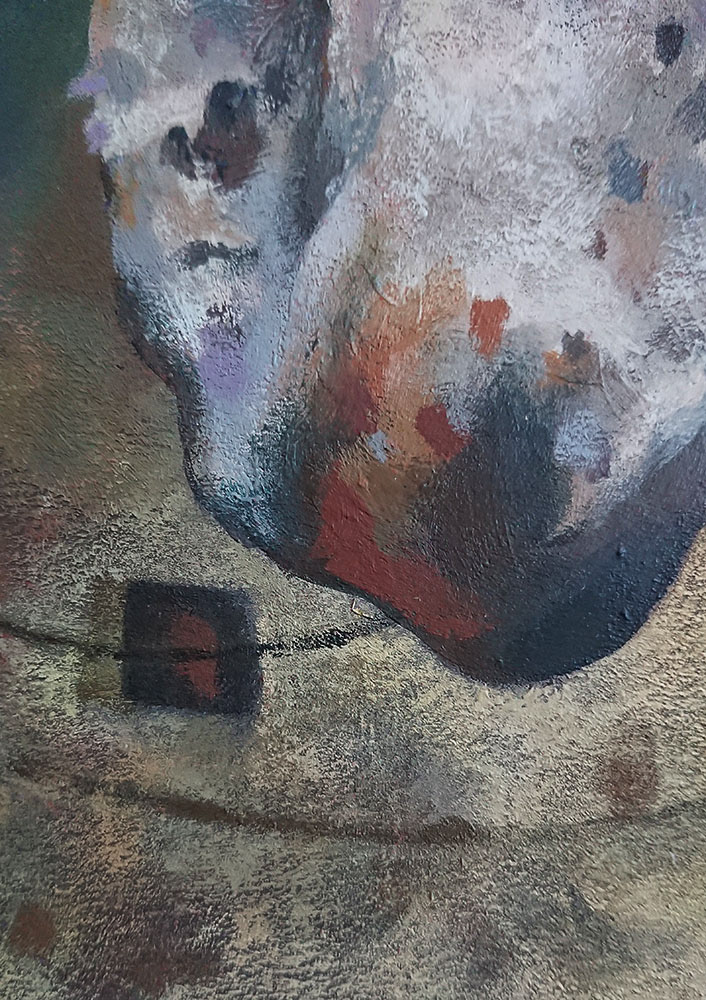 Marked by..., acrylic paints on cardboard, dimensions 100 cm x 66 cm, 2023