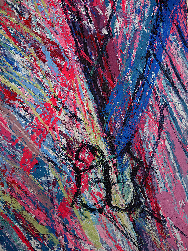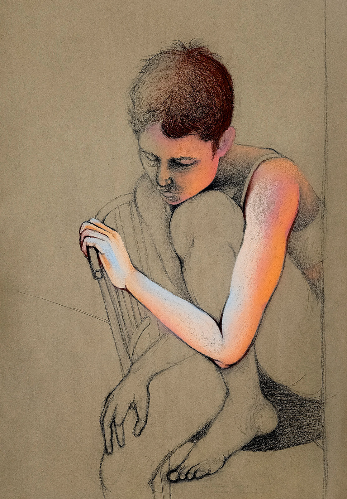 Don't look at me, soft pastels and charcoal on paper, dimensions 50 cm x 70 cm, 2023