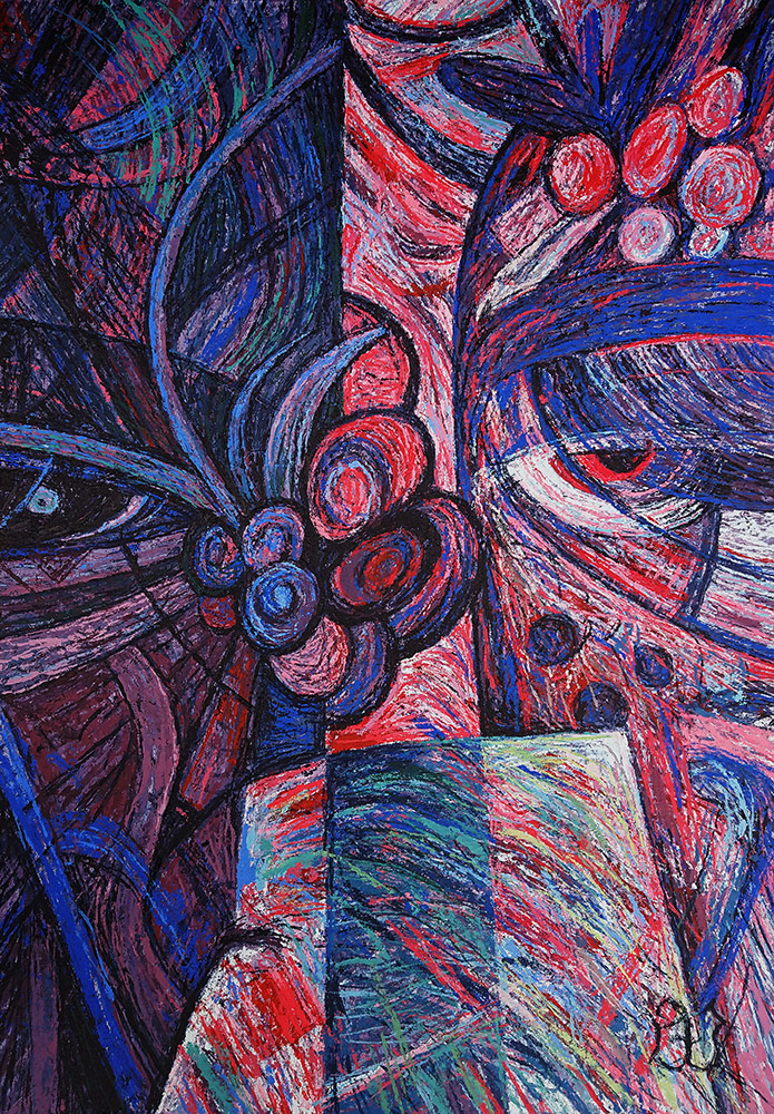 Blueberries, acrylic paints on canvas, dimensions 100 cm x 70 cm, 2023