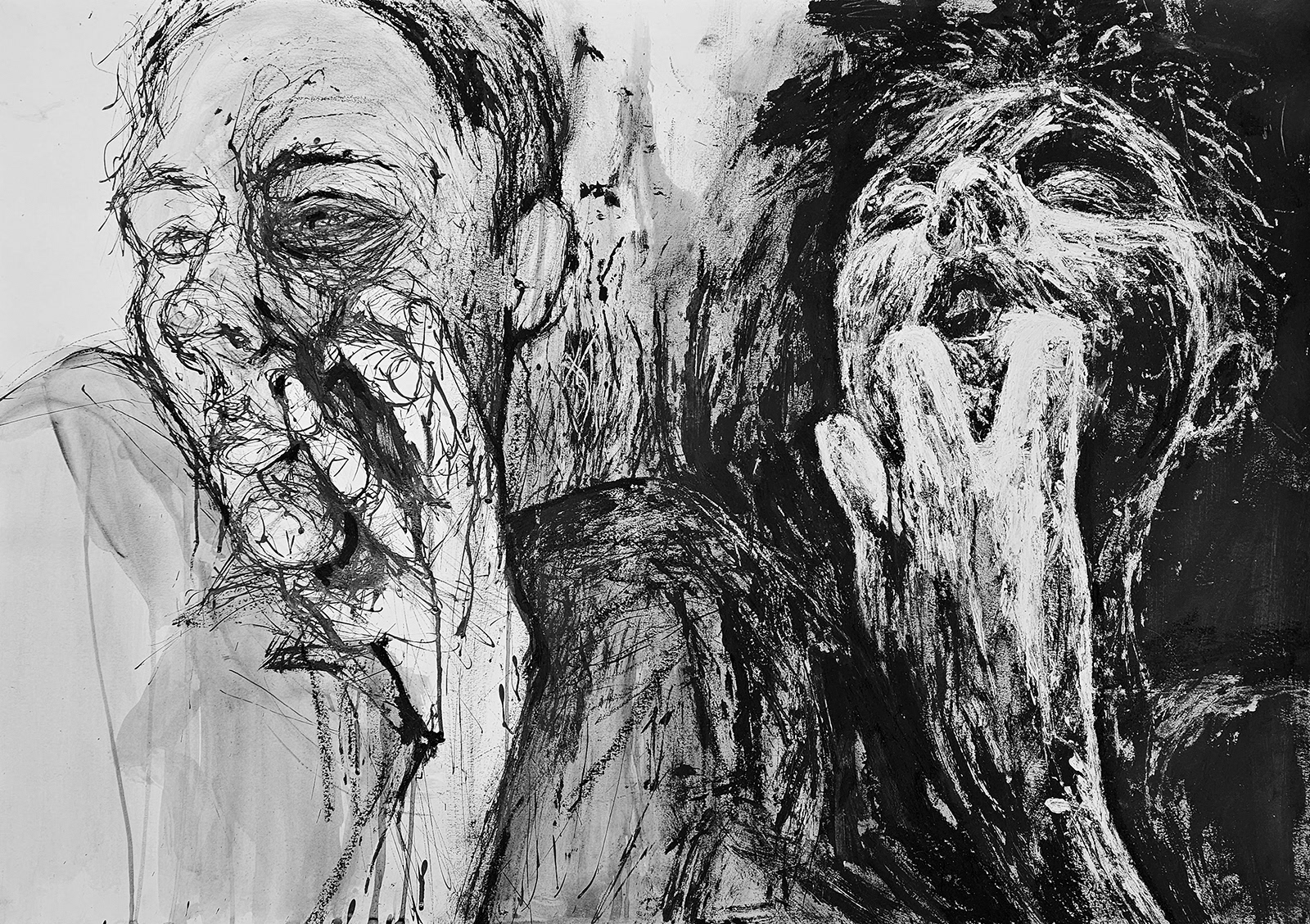 She II, ink and charcoal on paper, dimensions 100 cm x 70 cm, 2025