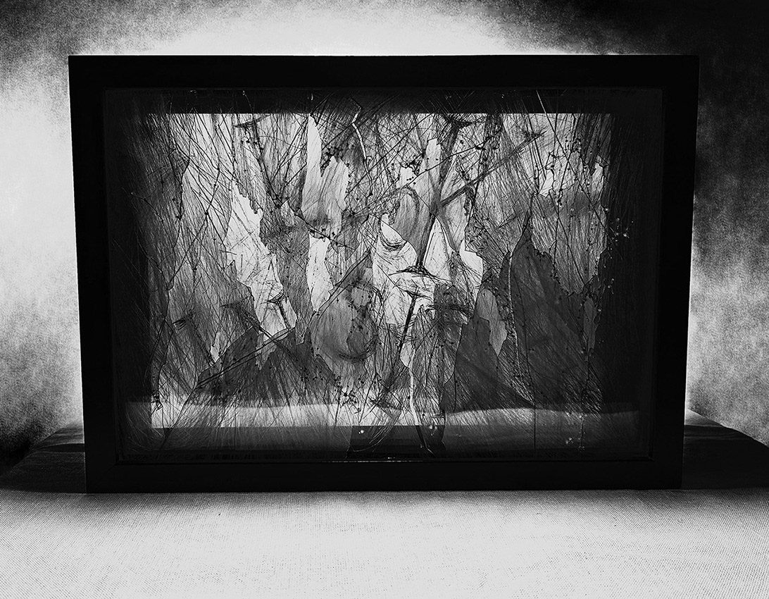 , art installation, mixed media, dimensions 25 cm x 25 cm x 10 cm